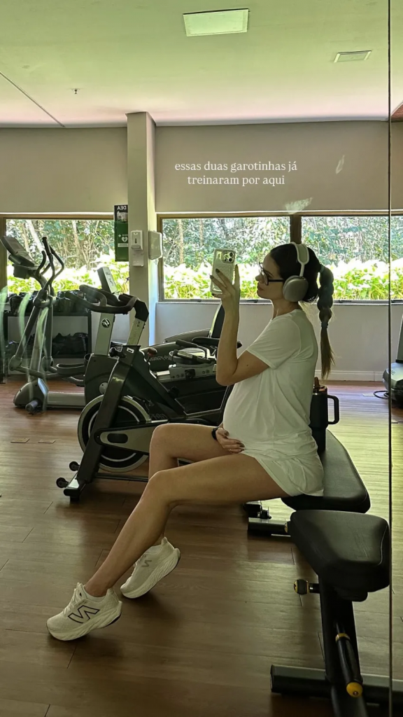 Camila, que está grávida de seu primeiro filho, tem mantido uma rotina de treinos leves e adaptados para gestantes, focando em atividades seguras como alongamentos, exercícios de resistência moderada e cuidados posturais. Especialistas recomendam esse tipo de prática para gestantes, pois ajuda a manter a saúde cardiovascular, reduz dores lombares e contribui para o bem-estar geral.
