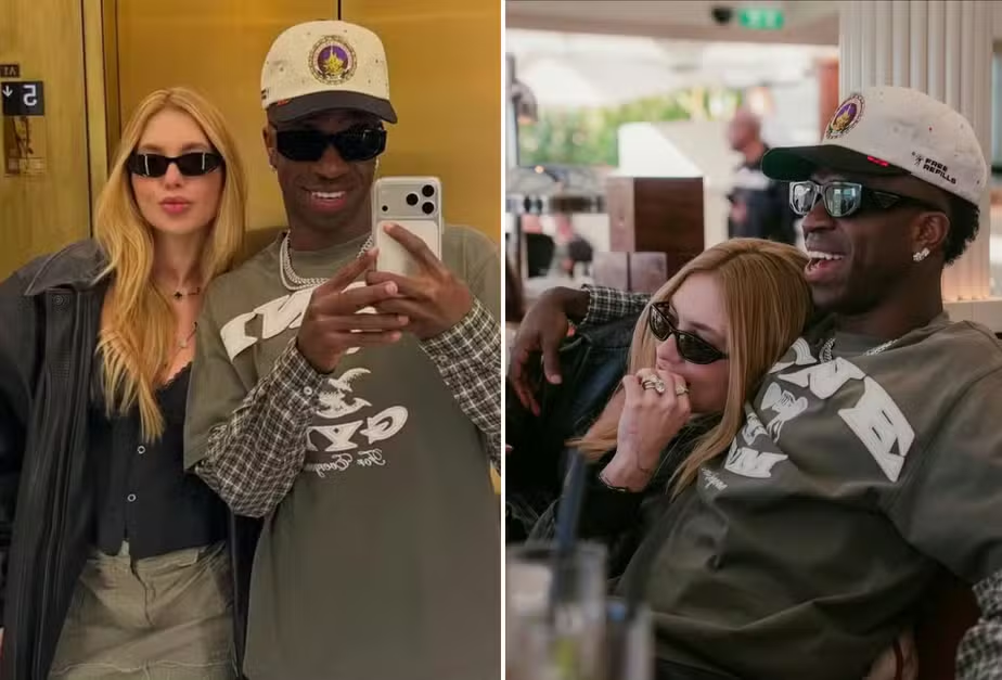 O jogador Vinícius Júnior, do Real Madrid, e a influenciadora Virginia Fonseca oficializaram seu relacionamento nesta terça‑feira com uma publicação conjunta nas redes sociais que marca o primeiro registro público deles como casal. A foto foi feita em um quarto de hotel decorado com pétalas de rosas, balões em formato de “Love” e ursinhos de pelúcia, logo após o pedido de namoro do atleta.