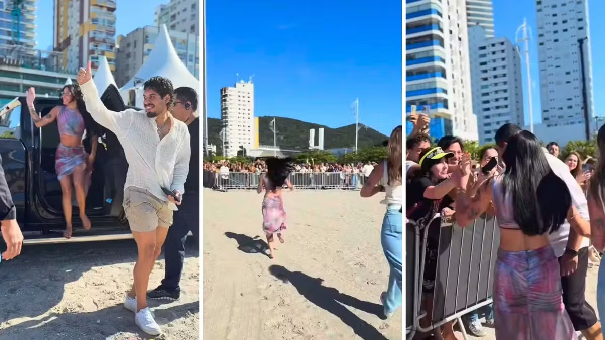 Ao chegar à praia para as filmagens, Ana surpreendeu os presentes: ela tirou o chinelo e correu descalça até a grade onde fãs e admiradores aguardavam, ignorando a barreira de segurança. “Cheguei correndo pra vocês”, reagiu, segundo vídeos publicados por ela nas redes.